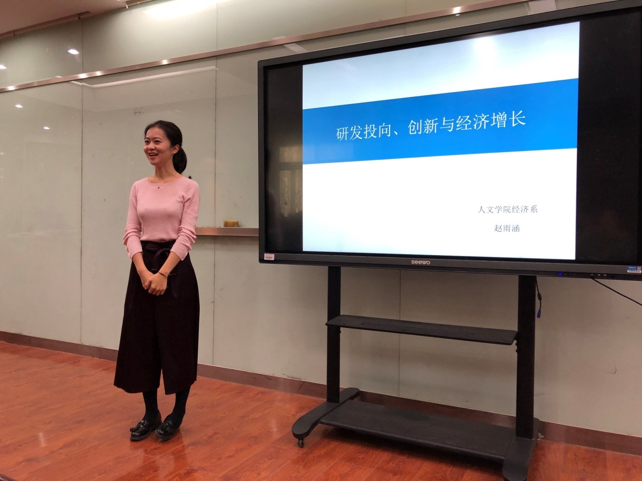 2018年11月19日星期一上午十点,公司研究生会学术部在院楼202室成功举办了主题为《研发投向、创新与经济增长》的专题讲座。本次讲座有幸邀请到了304永利集团经济系赵雨涵老师,赵老师运用理论与实证相结合的方法向我们展示了研发投向、创新与经济增长的关系。
