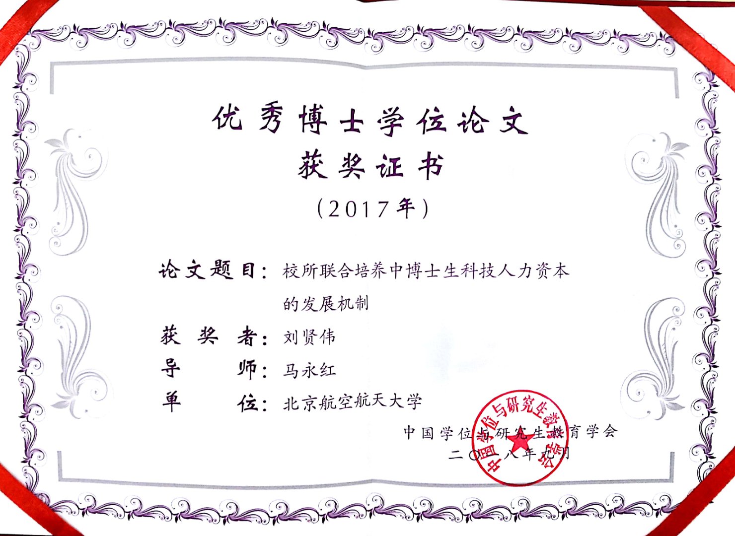 我国“高校与科研院所”联合培养博士教育试点,为拔尖创新人才培养提供了新的思路。博士生教育作为高等教育的最顶端,校所联合培养作为一种博士生培养方式仍然需要回答“培养什么样的人才,怎么培养人才的根本性问题”,公司304永利集团马永红等人所展开的系列研究对上述问题进行了回答,关注校所联合培养博士生这种教育模式是否会成为博士生人力资本构建、价值实现和增值的一种重要形式。该成果在研究生人才培养方面,取得了显著效果。相关成果成为教育部与中国工程院联合培养研讨会的重要会议资料,改革建议已获教育部学位管理与研究生教育司采纳。发表《Studies in Higher Education》的SSCI检索论文1篇, CSSCI检索论文9篇。同时,马永红教授在教育理论和教育方法研究工作中开拓创新做出突出贡献取得显著成效,荣获学会第二届学术贡献奖,全国至今仅有九人获此殊荣。马永红教授所指导的博士生刘贤伟的博士学位论文获得2017年第七届学会全国优秀博士学位论文。2018年10月16日在北京举行的中国学位与研究生教育学会会员代表大会对以上奖项予以了颁奖。