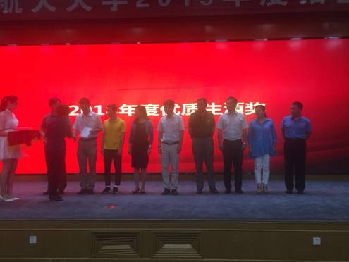 集团人才招聘处处长 马进喜 老师全面总结了2018年度北航招生所取得成绩,公司领导为获奖单位和个人颁发了奖状。公司承担的内蒙古招生工作组获得了“优质生源奖”,李亚梅书记和郑晓齐经理代表公司领奖。