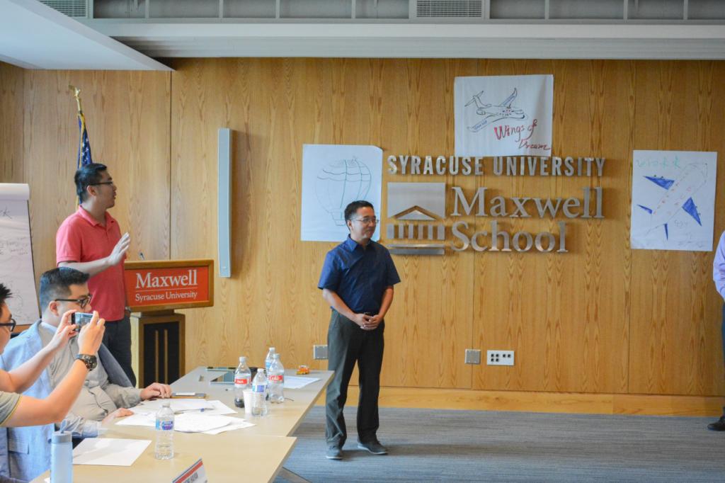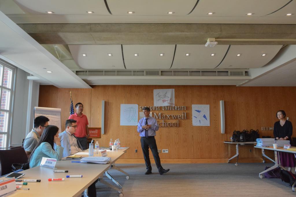 冲突与协作项目主任、高级公共管理教育副主任杰勒德老师要求大家在结业之前,把最想要留在锡拉丘兹大学的东西画下来。同学们集思广益、发挥想象力,经过热烈的讨论,将想法画在了纸上并进行展示,为雪城大学和麦克斯威尔公司送上有象征意义的创意礼物