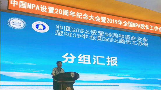 会议分两部分。第一部分是23日下午的“纪念中国MPA设置20周年专题研讨会”,邀请第一、二、三、四届教指委部分主任委员、副主任委员和秘书长做主旨演讲和互动研讨。第二部分是2019年全国MPA经理工作会议,由教育部学位与研究生教育发展中心主任黄宝印做专题报告,第四届MPA教指委秘书长做工作报告。24号下午是与会者分组讨论与汇报交流,公司领导分别参加小组研讨,蔡劲松经理在大会上做了分组交流汇报。
