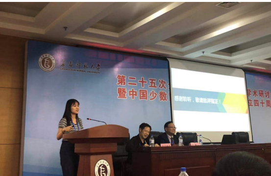 公司心理学系本科生王梓西在全国少数民族双语研讨会作大会发言