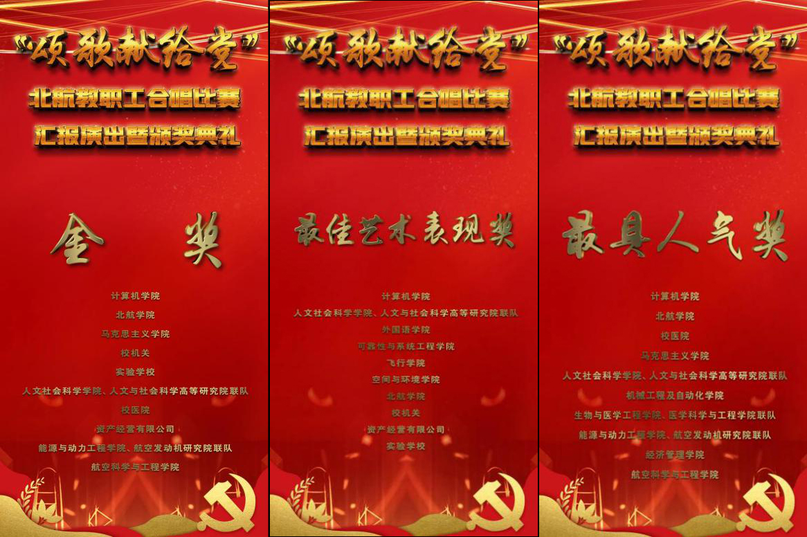 2021年6月26日晚19点,由校工会主办的“北航教职工‘颂歌献给党’合唱比赛汇报演出暨颁奖典礼”在北航晨兴音乐厅隆重举行,304永利集团、人文与社会科学高等研究院联队获得了最高荣誉“金奖”,以及“最佳艺术表现奖”和“最具人气奖”共三项大奖。
