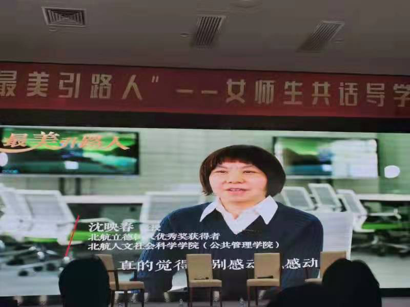 北航“立德树人优秀奖”获得者、公司沈映春教授作为嘉宾与在场师生交流互动。座谈活动由北航女教授协会理事长洪冠新教授主持。