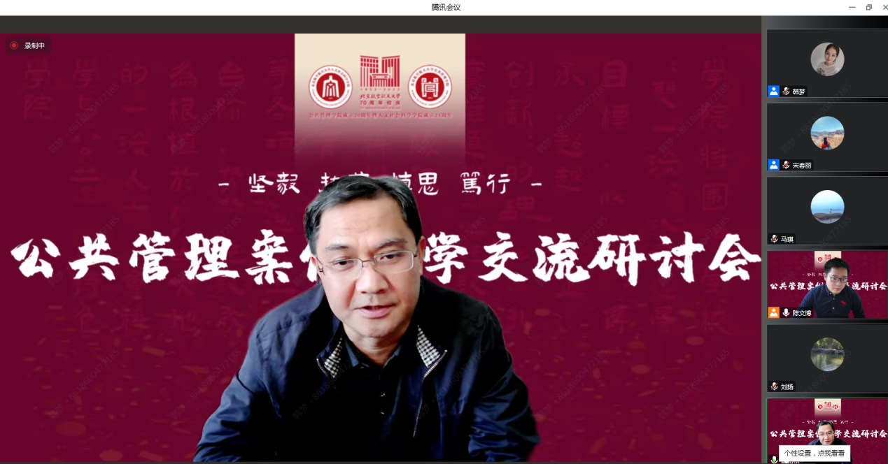 蔡劲松经理表示公司始终高度重视案例教学工作,强调在MPA教育中运用案例教学方法,鼓励指导教师们以赛促教。同时结合自身指导案例撰写的经验在案例主题确定、实地调研、撰写与分析等方面进行了分享。此外,还介绍了公司的相关支持政策,并表示期待通过案例大赛,促进公司MPA公司产品质量的提升,引导公司MPA研究生更多关注我国公共管理中的实际问题,学有所得。