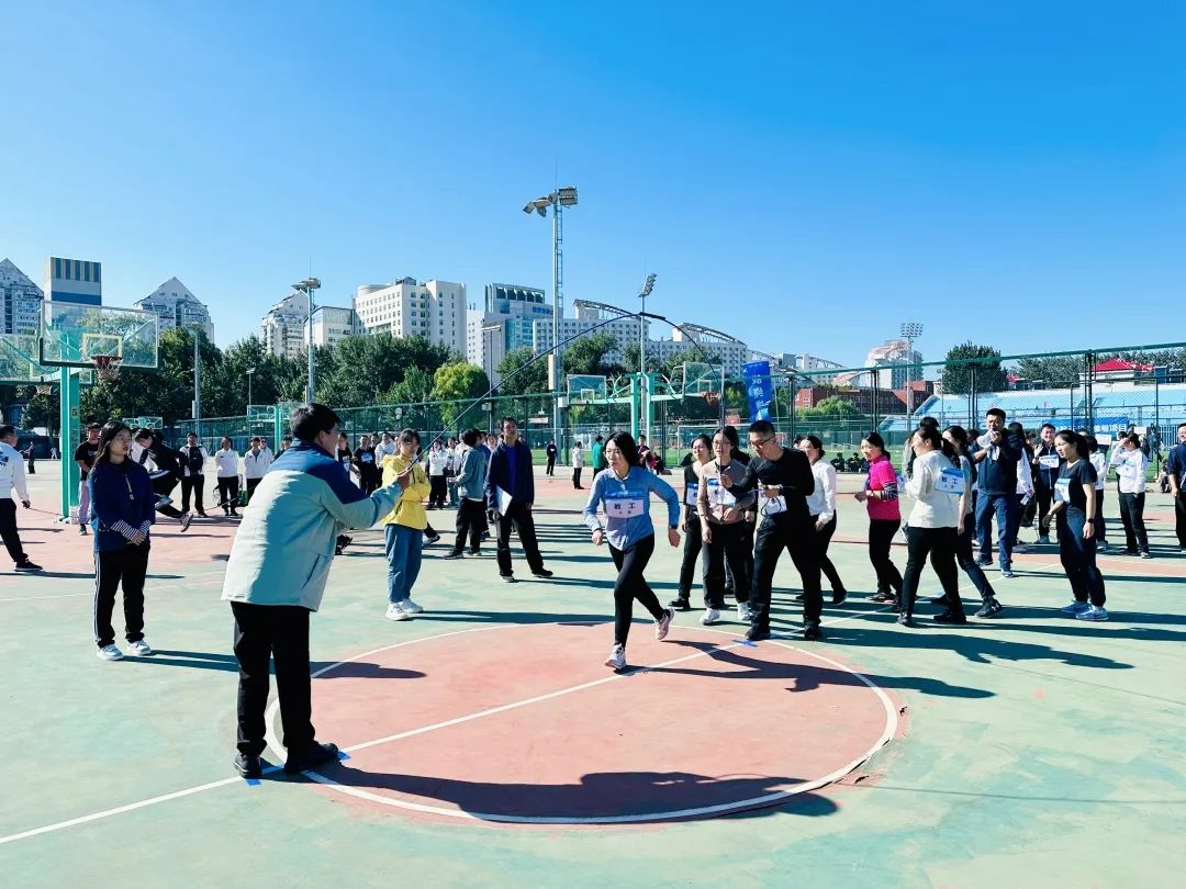 率先开始的是教职工跳绳比赛,在师生们的呐喊助威声中,公司教职工代表队三分钟10人依次以“8”字路线穿越长绳,并尽可能多地完成跑跳进出绳,大家团结协作展现出了不俗的实力。
