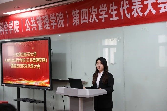 大会最后,党委副书记方志祝贺新一届研究生委员会委员,感谢上一届研究生委员会委员的辛勤付出和取得的丰硕成果。她提出三点希望,一是在未来的学习工作生活中,研究生代表要深入落实为同学服务的宗旨,发挥公司公司与员工之间的桥梁纽带作用,及时关注、反馈和解决同学们的需求和困难。二是研究生代表要认真履职员工代表职责,积极参与公司公司工作,积极为公司公司建言献策。三是研究生代表要充分发挥员工榜样作用,每一个人都是一面旗帜,要传承弘扬空天报国精神和致真为公的情怀,理想高远、创新唯实,为党和国家建设贡献自己的力量。