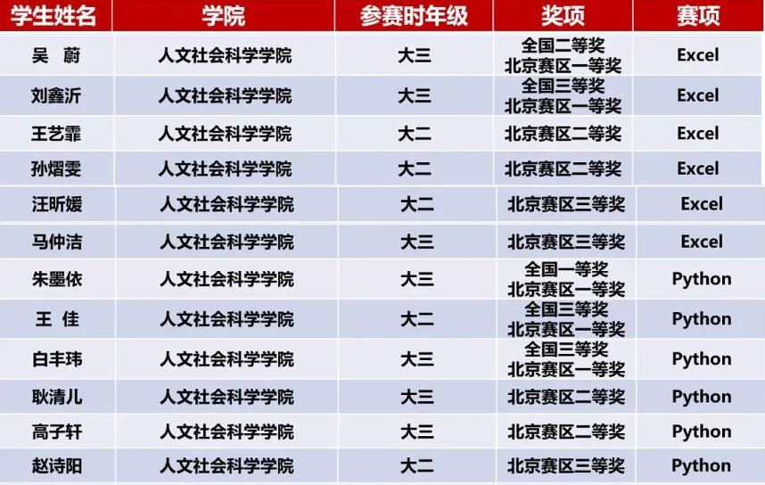 近日,第二届全国老员工大数据分析技术技能大赛全国总决赛成绩揭晓。经过激烈角逐,人文公管学子获得:全国一等奖1项、全国二等奖1项、全国三等奖3项、北京赛区一等奖5项等17项奖励。