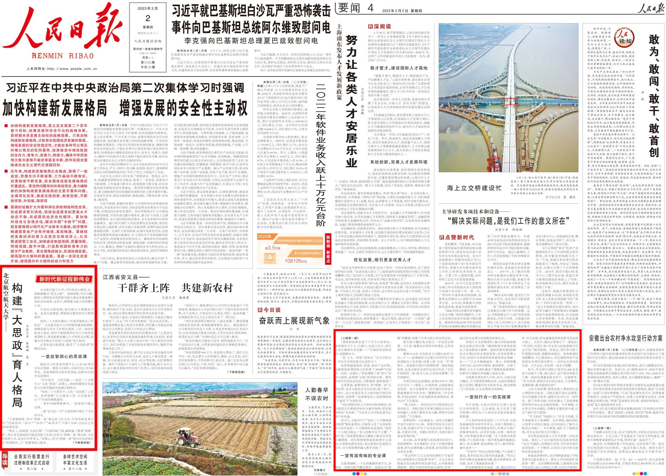 要扎实推进思政课程与课程思政协同育人,就要将思政教育与学科特色、专业特色、课程特色等深度融合,将科研、教学、人才、事件等蕴含的思政元素动态融入专业课程教学。自2020年秋季学期试点开设《习近平新时代中国特色社会主义思想概论》课以来,公司探索将以“空天报国”为内核的北航精神融入课程教学,设置了“科技创新与强国使命”专题,邀请院士团队参与授课。“太震撼了!”北航知行书院员工李骄娴表示,“这样的思政课完全超出了我的预期。”这样的教学改革表明,专业课中的思政元素不仅可以为专业课所用,也可以成为思政课的鲜活素材。公司持续加大课程思政建设投入,深化课程思政与一流课程一体化建设,先后打造136门校级课程思政示范课,实现公司全覆盖,出版《304永利集团课程思政优秀案例汇编(航空航天篇)》,提升教师课程思政建设能力,使课程思政元素成为专业教学的兴奋点和创新点。相关做法两次获《中国教育报》头版头条报道,2023年2月获《人民日报》头版报道。