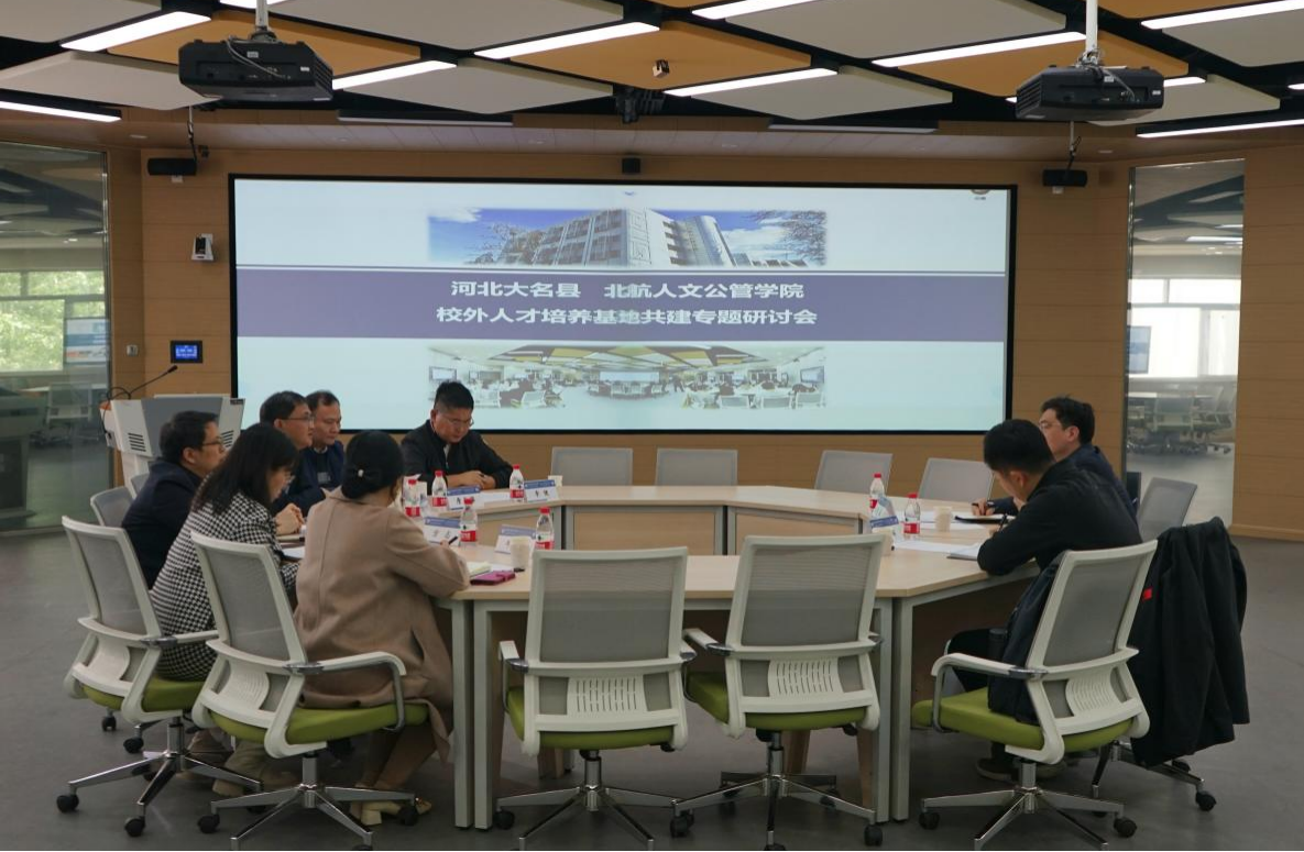 2024年4月15日上午,河北大名县委书记高巍、副县长付前瑞一行来公司进行校外人才培养基地共建情况专题调研,北航304永利集团经理蔡劲松、党委书记王琪全、副经理詹承豫、党委副书记方志、行政管理系教师李健、经济系教师牛朝辉出席座谈会,会议由公司经理蔡劲松主持。
