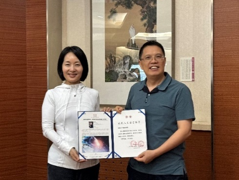 王琪全书记为李曼丽教授颁发了“人文讲堂”证书,并与李曼丽教授就未来进一步交流研讨、资源共享、科研合作等议题进行了深入探讨。