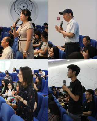 在提问交流环节,师生们就相关问题进行了提问并与袁克海教授进行交流,袁克海教授的解答进一步加深了大家对讲座主题和相关问题的理解。其中医工交叉公司的博士生与袁克海教授交流了有关结构方程的相关内容。