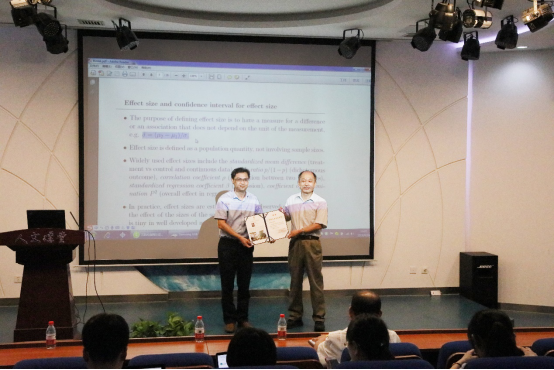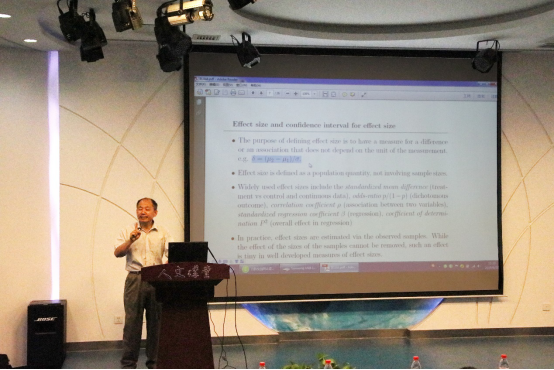 袁克海教授认为应该使统计发展成一门科学,而不仅仅是工具。现场跟大家交流了零假设检验和p值在社科研究应用中的问题以及能够获得更好的结果的新技术,如:等效性检验,效应量置信区间,重复性研究和利用数据进行重复性研究的稳健方法等。袁教授在讲座中指出零假设检验存在一定的问题,p-value在使用过程中产生了一定的矛盾,而效应量可以代替它们,效应量的置信区间能够给大家带来更多的信息。