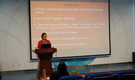 再次,Angela Valenzuela教授介绍了在2019年第86届德克萨斯州立法会议上通过的第3893号德克萨斯州GYO教育者法案,该法案确定GYO计划为德克萨斯州合格的教师助理或员工提供免费的高等教育认证途径。无论是作为教师助理还是高中生,GYO候选人都可以在德克萨斯州目前教师短缺的情况下参加课程。