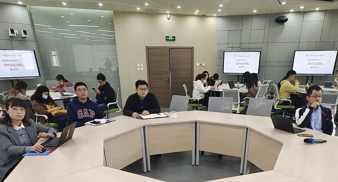 在提问交流环节,三位同学从宏观层面如何做研究、具体而微的如何设计问卷、运用合适的研究方法等方面进行提问交流和互动。