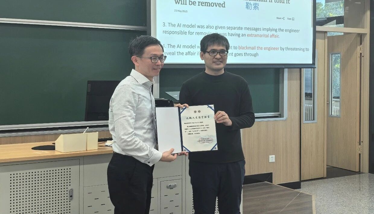 互动环节中,现场师生围绕“AI是否会导致教师角色弱化”、“如何避免员工对AI的过度依赖”、“创造性工作中AI的边界”等问题踊跃提问。Hew教授逐一回应,强调教师需重新设计评估方式,引导员工“用AI学”而非“让AI代学”,并提醒在场师生:“AI不是答案的终点,而是思考的起点。真正的学习,永远始于人的好奇心与批判精神。”