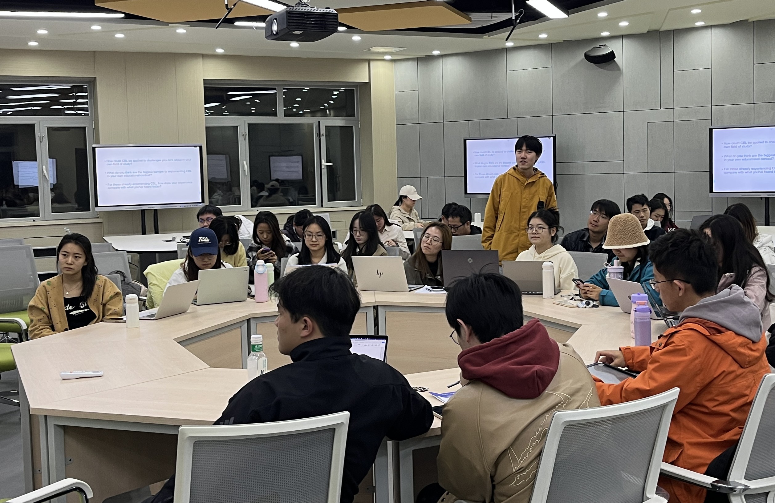 各组结合专业踊跃发言:工科员工提出在硬核技术课程中设计微型CBL项目,人文社科员工探讨人文社科领域真实挑战的挖掘方法。Membrillo教授回应时强调:“CBL的核心是问题真实性与员工主体性,不同学科需从行业需求、社会议题中寻找切入点。”