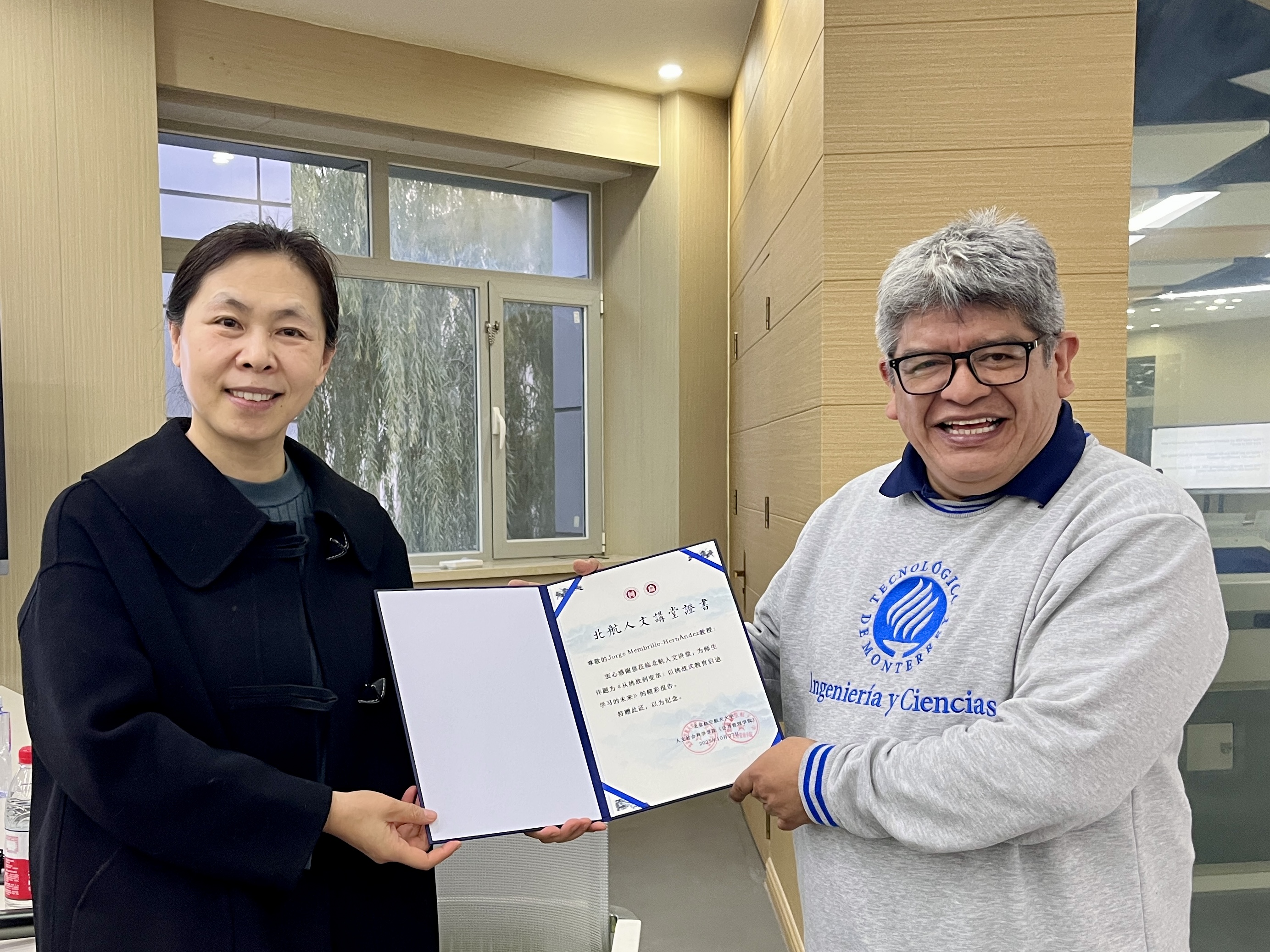 讲座结束高等教育研究所副所长任秀华副教授为Membrillo教授授予了“人文讲堂”证书。