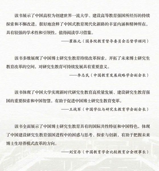 研究成果将为国内外学者、同仁提供重要文献和研究参考,提出的政策建议力求为我国博士研究生教育综合改革的全面深化、培养质量的全面提升、具有中国特色研究生教育强国的加快建成等战略目标的实现提供有益参考。