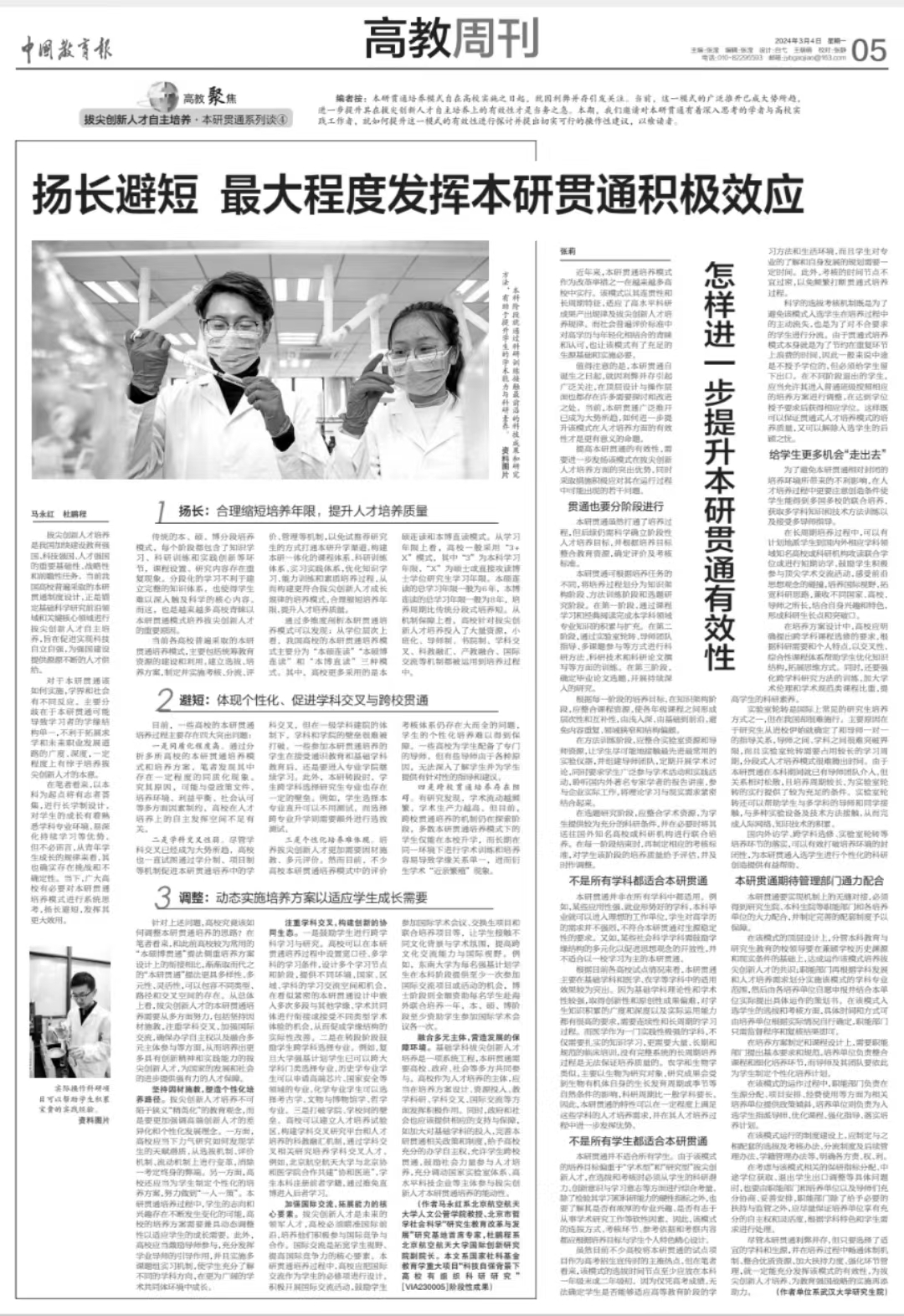 拔尖创新人才培养是我国加快建设教育强国、科技强国、人才强国的重要基础性、战略性和前瞻性任务。当前我国高校普遍采取的本研贯通制度设计,正是锚定基础科学研究前沿领域和关键核心领域进行拔尖创新人才自主培养,旨在促进实现科技自立自强,为强国建设提供源源不断的人才供给。