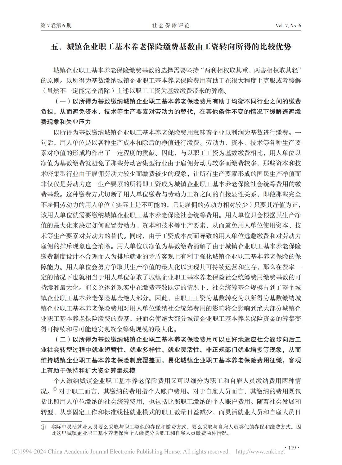 【关键词】城镇企业职工基本养老保险;缴费基数;工资;所得;比较优势;