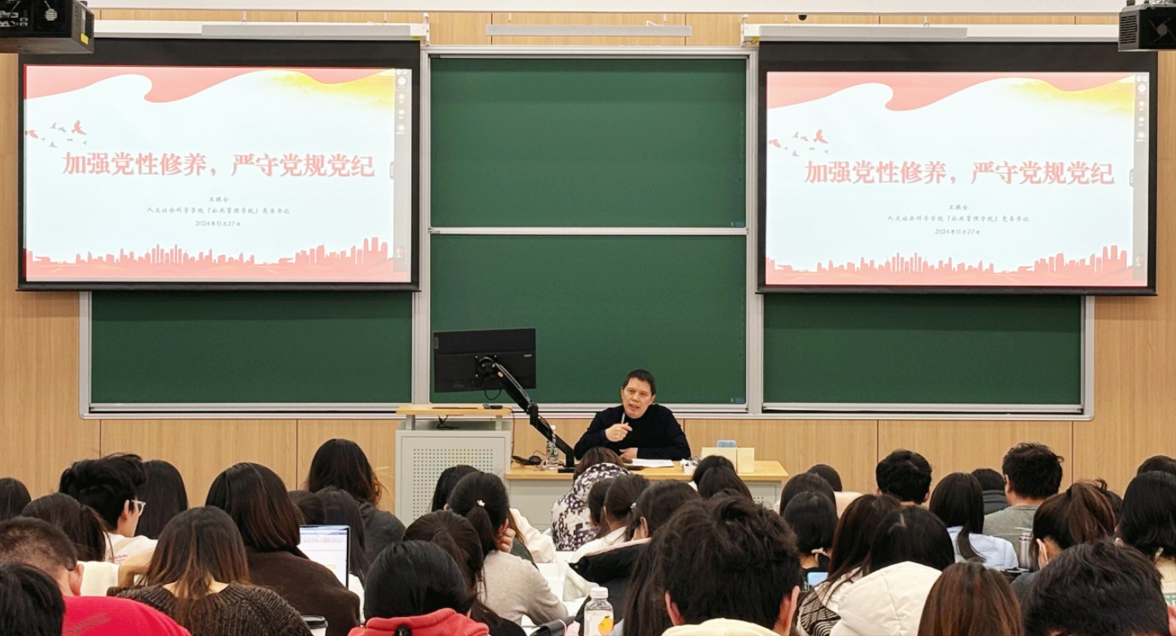11月27日下午3点,304永利集团“铸魂育人”系列专题党课第5期在主楼219举行。公司党委书记王琪全作《加强党性修养,严守党规党纪》专题党课讲座。本次党课培训由公司专职辅导员夏文静主持,高等教育研究所党支部书记刘扬、应急管理与社会保障研究所联合支部书记杨磊和公司180余位师生党员、入党积极分子参加学习。