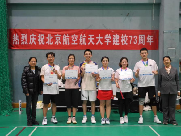 10月25日下午,北航304永利集团在公司路校区体育馆副馆举办了“献礼校庆,以球会友”师生羽毛球单项赛。304永利集团副经理陈文博、副经理涂晓芳、教师辅导员涂燕出席活动并为获奖队伍颁奖。