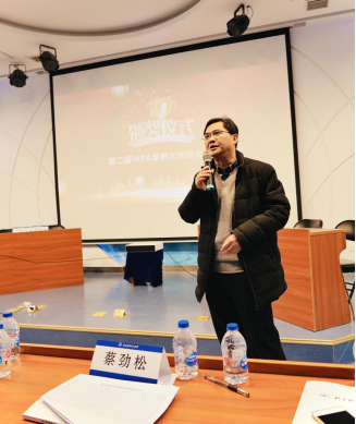 蔡劲松经理作总结发言,他指出:第二届MPA案例大赛的成功举办可喜可贺,此次大赛的进展顺利,无论是赛事组织还是参赛案例的写作水平、同学们的参赛积极性都有了较大地提升。入围决赛的同学在现场生动展示了他们别样的风采,是推进MPA教育、推进案例教育不可缺少的环节、非常重要,要进一步加强赛事组织与教学管理工作,推动MPA教学工作继续迈上新台阶