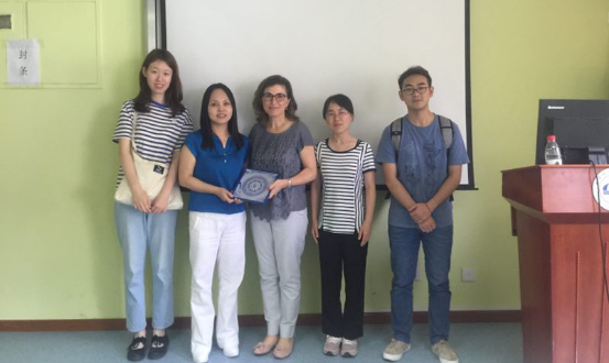 讲座和学术讨论会均在轻松愉悦的氛围中进行,师生们积极参与讨论,踊跃提问。邓丽芳老师对此次活动进行了点评和总结,并向Despina Tata赠送礼品表达了谢意,赵丽波老师也结合自己的研究经历和Despina Tata教授进行了交流和分享,最后讲座和学术讨论会在大家热烈的掌声中圆满结束。