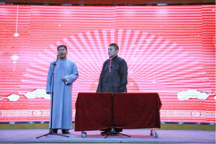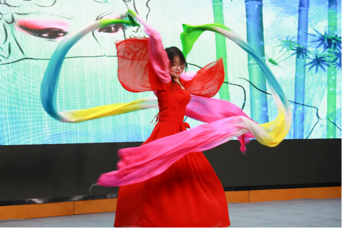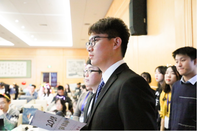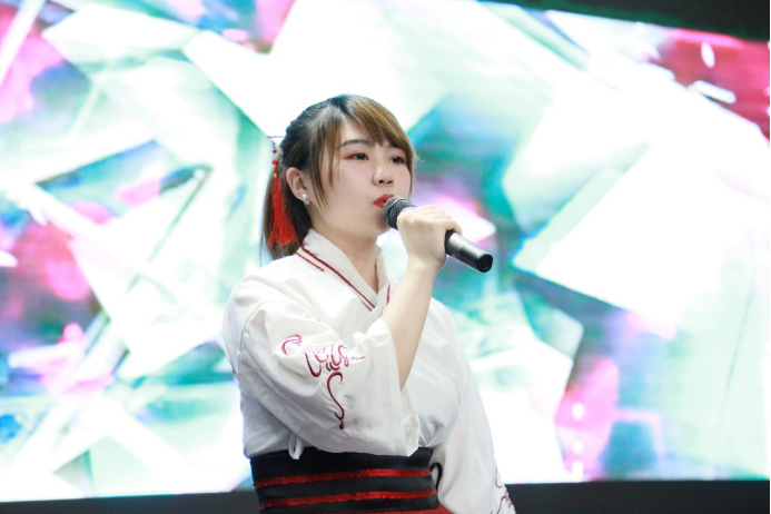 翩翩凤凰立枝头,嫣嫣袅袅且欲飞,李智同学深情演绎《凤凰于飞》,逍遥轻飘的歌声中是对盎然春色的期盼,是对青春流光的珍惜。天笑相声社的张鹤鹏和燕帅同学表演的相声《出口成章》以风趣幽默的动作、诙谐幽默的语言让全场笑声不断,两位表演者也频频与现场观众互动,更增添了欢乐的气氛。梨花开,春带雨,梨花落,春入泥。刘珂旬同学带来京剧《梨花颂》,以声绘情,以情带声,曲罢后的一段绸舞,再一次点燃了全场的气氛,回味悠长,感人肺腑。