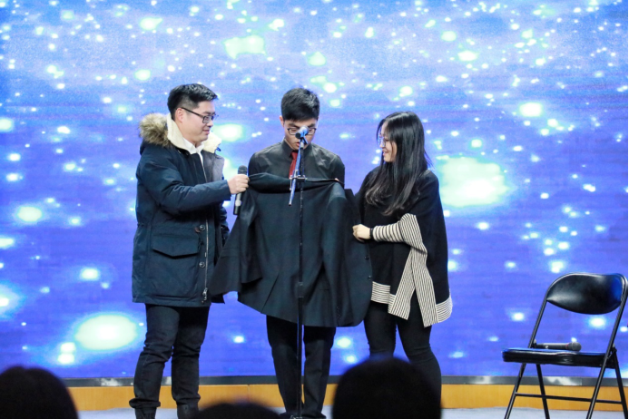 过去的一年,每个人都会有印象深刻的事情,遇到困难时是那些亲爱的人们陪你共同度过,郑舒文同学带来舞蹈串烧《这支舞献给亲爱的你》。曼妙优雅、婉约优美,感谢人生道路上有你们的陪伴;活泼动感、欢快俏皮,有你们一起分享喜悦才更幸福。对唱《奇妙气球》,陈奕聪和刘育彰同学诠释了真正甜蜜的爱情就是双方彼此的陪伴和彼此的依赖。由周双钊同学带来的魔术《纸片寓言》,调动起了全场观众的好奇,一起见证了“奇迹”的发生。