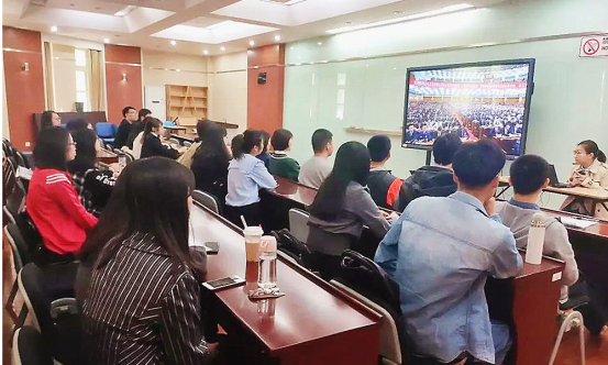 2019年4月30日上午,公司组织员工党员在系楼202教室集中收看纪念五四运动100周年大会现场直播,全体员工党支部党员代表参加。