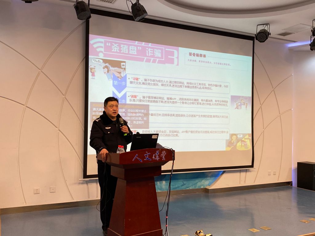 万俊义警官从电信诈骗的特点、类型和防范方法出发,结合理论知识与现实案例,为师生生动形象地讲解了网络刷单诈骗、校园贷诈骗、网络游戏虚假交易诈骗等48种诈骗形式,参会师生深刻了解了电信诈骗的危害,进一步提高警惕,防范风险。