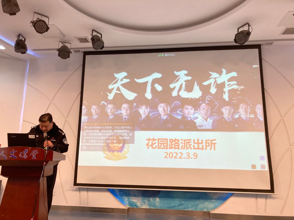 2022年3月9日,为进一步提高师生个人安全意识与防诈能力,筑牢校园安全防线,切实减少校园网络电信诈骗案件的发生,公司邀请到花园路派出所北航社区民警万俊义为全院员工开展“天下无诈”安全教育主题讲座。集团保卫处雷婷、张帆老师以及公司刘扬教授专职辅导员张同玉老师参加本次讲座。活动通过线上和线下相结合的方式开展