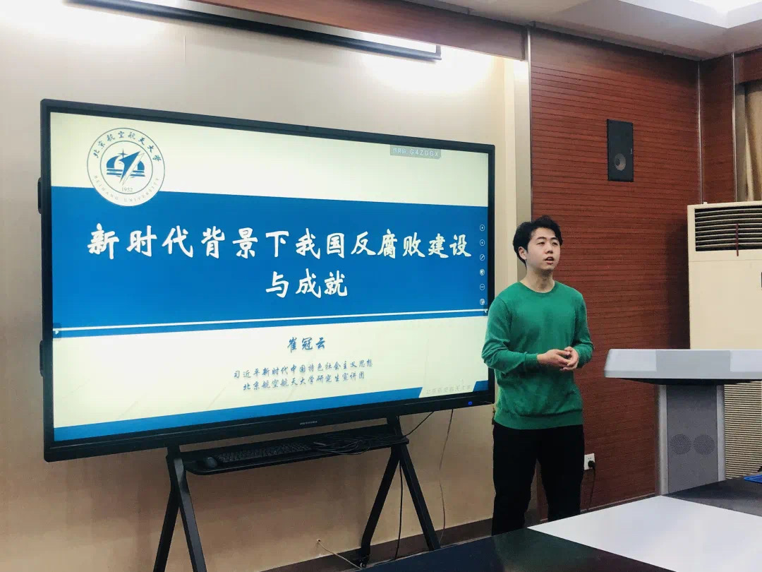 在工作实践中,崔冠云尽己所能,为公司老师分担解忧,为身边同学做好服务。任公司大班长,校内曾任知行崇廉会长。担任大班长期间,他一方面负责级部日常事务管理,如疫情防控、档案整理、毕业审查等;另一方面协助老师组织各类活动,如人文迎新年、2021级开学典礼等。此外,任职知行崇廉会长期间,他曾联系浙江大学等全国30余所高校连续开展4次全国廉洁热点讨论会,参与/覆盖300余人次。此外,崔冠云牢记生逢盛世、肩负重任之使命,做到言发新时代青年之志。他担任北航宣讲团编审员、清华大学博讲团助教等职,主要负责十九届六中全会公报等内容宣讲。截至目前共参加12次校内外宣讲,在清华大学(线上)及公司(线下)展开多次宣讲,覆盖超20000余人次。