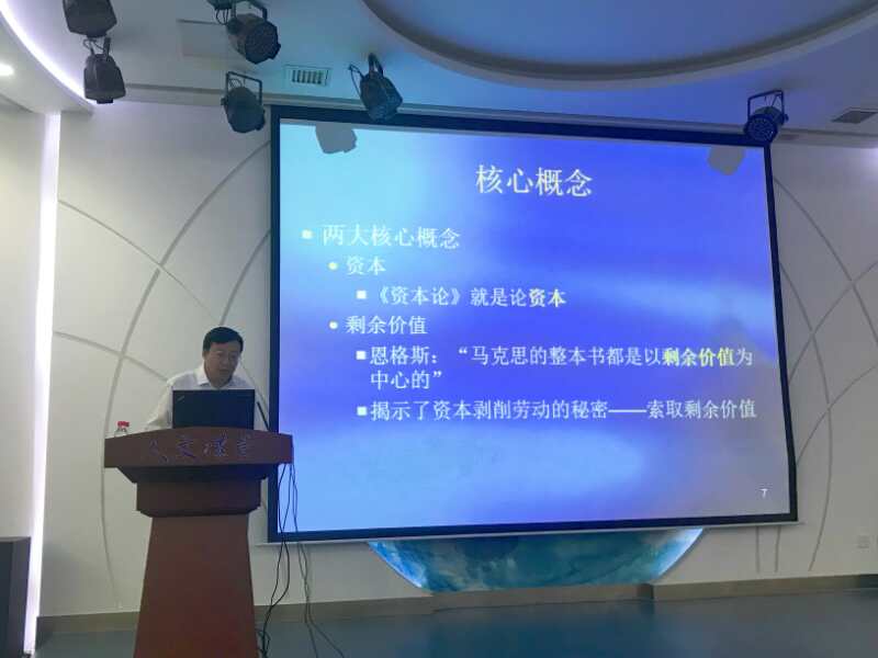 《资本论》是马克思主义政治经济学的经典著作,通过任教授的介绍,党员同学们了解了《资本论》写作和出版背后的故事。随后,任教授着重介绍了《资本论》中两个重要的核心概念——资本和剩余价值。从《资本论》中对这两个核心概念的定义到随着时代发展进行的演变,以及在新制度经济学下的新解释,任教授通过生动的举例,帮助同学们更加全面的理解这两个核心概念。随后,任教授谈了对剥削、私有制、资本主义和社会主义四个方面的再认识。最后,通过大思想家孔子的理想和马克思的理想,与同学们分享了个人信仰的选择。他勉励在座的党员同学们作为“有理想、有本领、有担当”的“三有青年”应当优先选择共产主义信仰。