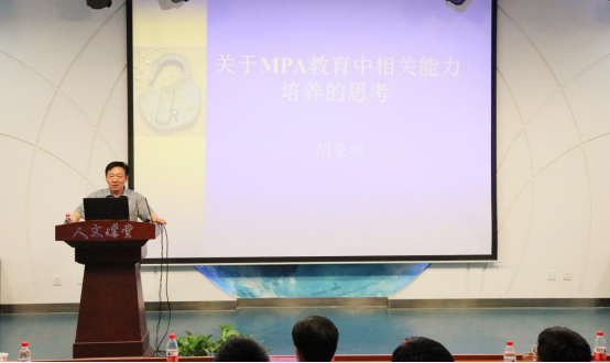 公司学术委员会副主任胡象明教授做了题为《关于MPA教育中相关能力培养的思考》的报告。胡象明教授提出研究生应具备的六种基本能力,即学习能力、获取信息能力、思维能力、创新能力、学术能力与实践能力。而MPA相比于学术型研究生,更强调职业性、应用性和实践性,这也是MPA研究生能力培养的方向。其中胡象明教授特别强调了实践能力,将其分为领导能力、决策能力、沟通能力、语言表达能力、应用写作能力和执行能力。进而胡教授提出MPA教学培养改进的建议。