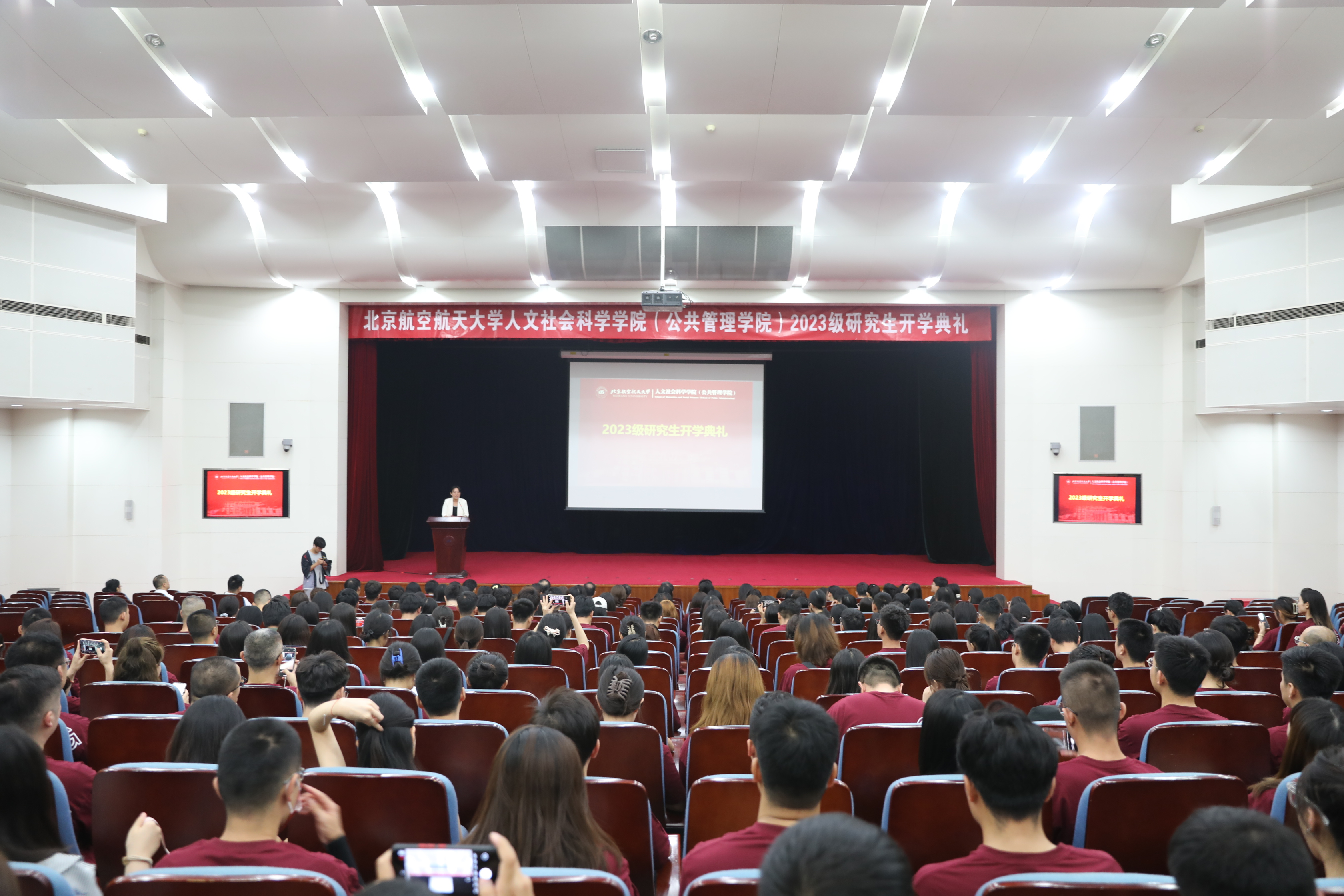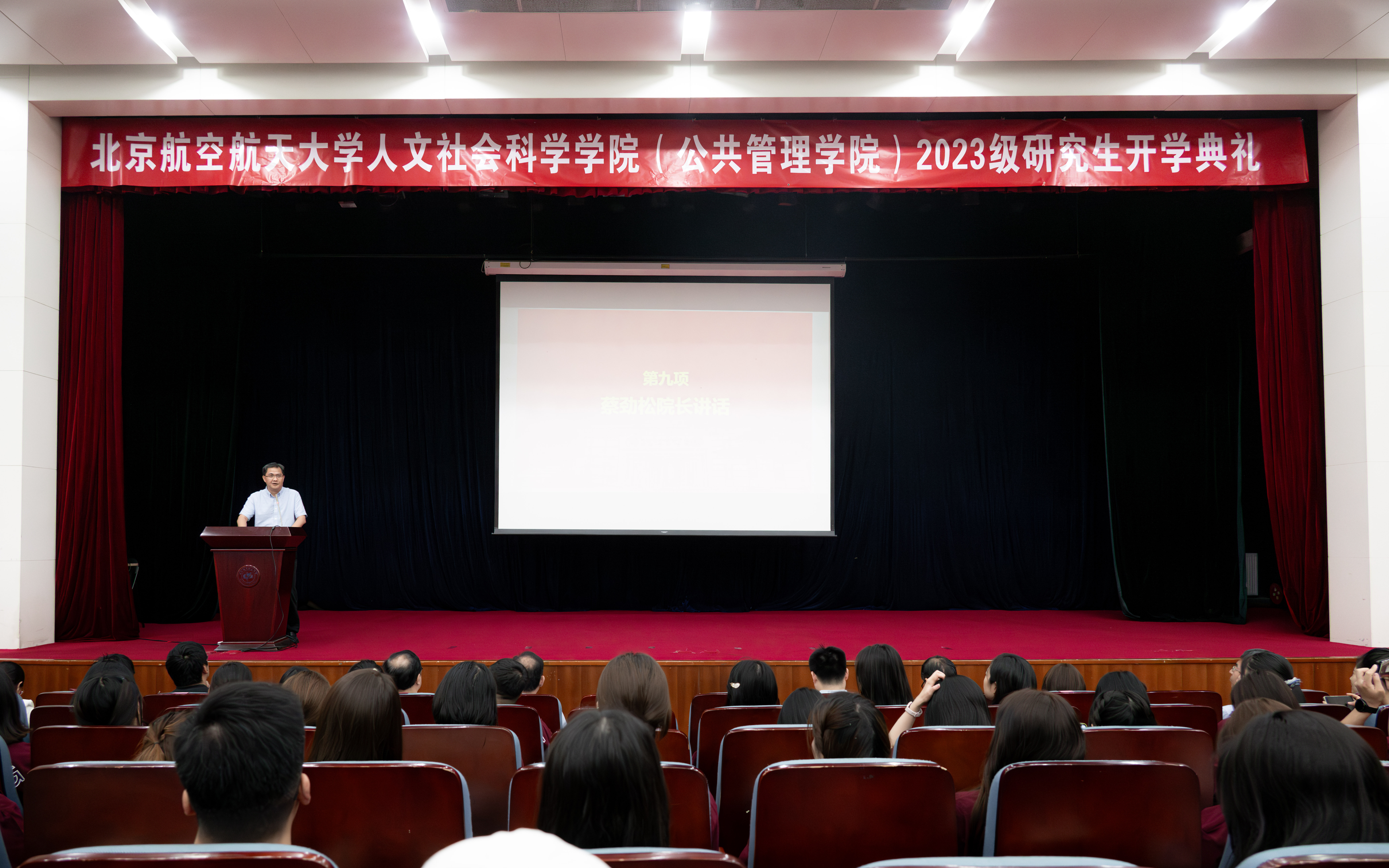 2023级硕士研究生孔令萌同学作为新生代表发言,她讲述了本科4年与北航同行、与人文公管同行的荣耀时刻,于高山之巅,方见大河奔涌,于群峰之上,更觉长风浩荡。身处新的起点,她鼓舞大家躬耕田野,用脚步丈量祖国大地;脚踏实地,用学识贡献青春力量;胸怀寰宇,用内心感悟时代脉搏。