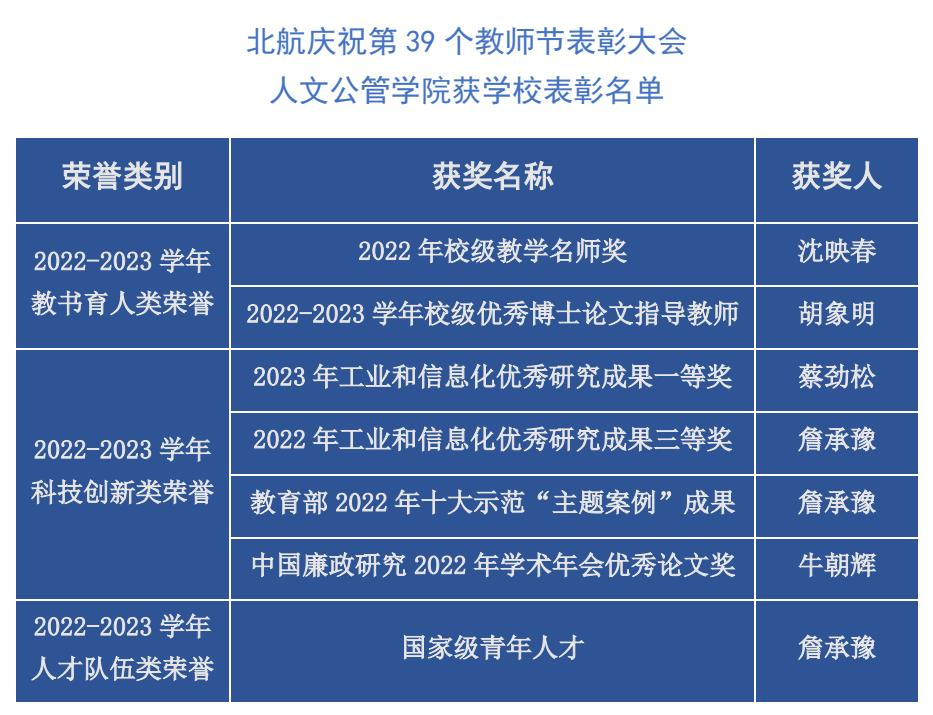 表彰大会上,公司经理蔡劲松教授作为人文社科类科研获奖(工业和信息化优秀研究成果一等奖)代表上台领奖,副经理詹承豫教授作为人才队伍类获奖(国家级青年人才)代表在公司教师节电视专题片中接受专访。