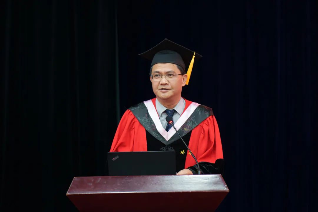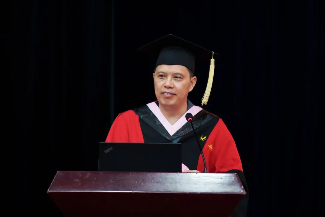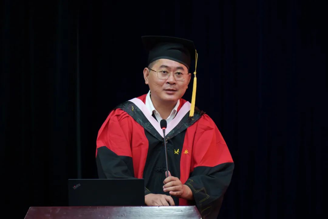 教师代表李健教授用“专业、底线、包容、奉献”四个词精简概括了在毕业之际想要向人文公管学子传达的人生阅历和经验。他叮嘱同学们未来无论身居何处,专业都是安身立命的根本;无论面对什么诱惑,都不能突破自己的原则和底线;无论面对什么事情,都不要包容自己的任性;奉献永不过时,人性最根本的就是对别人有用,让自己快乐。最后,老师希冀人文公管学子们能在人生漫漫中行稳致远,常回304永利集团看看。